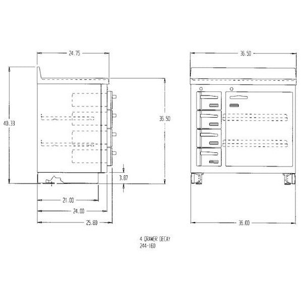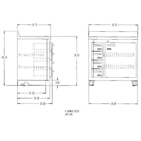Drawers are easily removed for cleaning and decontamination. The decay section includes two heavy duty adjustable shelves.