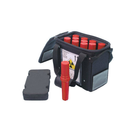 The durable, nylon, waterproof shipping bag is designed to accommodate up to 11 Pro-Tec Pigs containing syringes, ensuring safe, convenient handling of syringes from the pharmacy and back again. The system meets DOT 7A Type A packaging requirements.