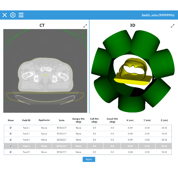 Predict collisions with customizable LINAC gantry head, electron cones, and SRS cones as well as Proton machine support. Detect collisions with CT HU values, the external body contour, and support structures.
