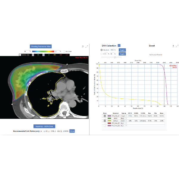 For clinics following RTOG 1005, EZFluence allows the user to boost coverage to lumpectomy volumes. Instantly plan integrated boost plans.