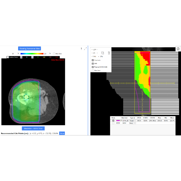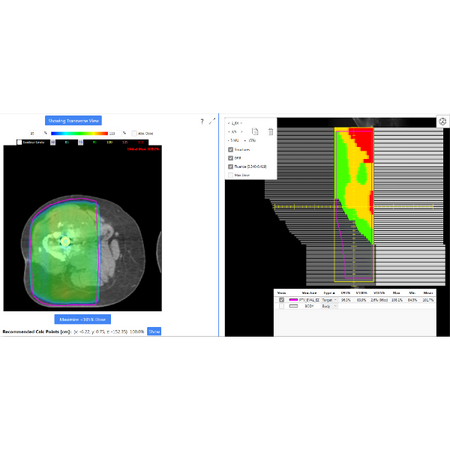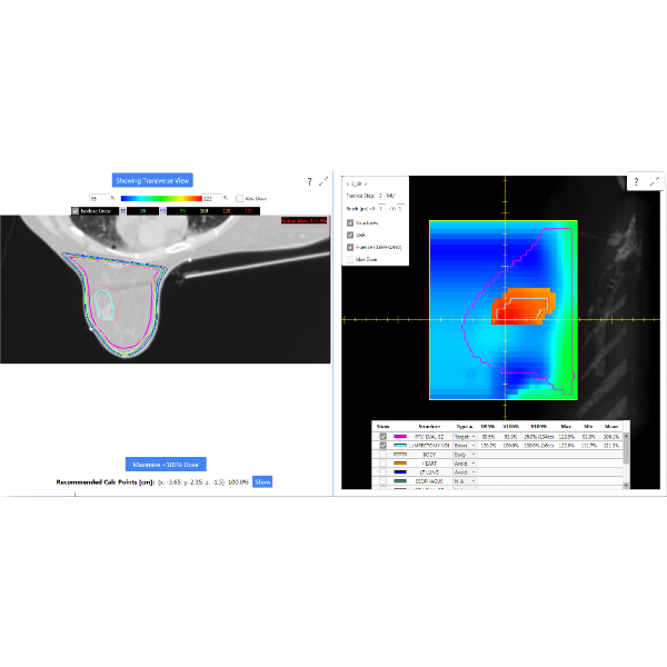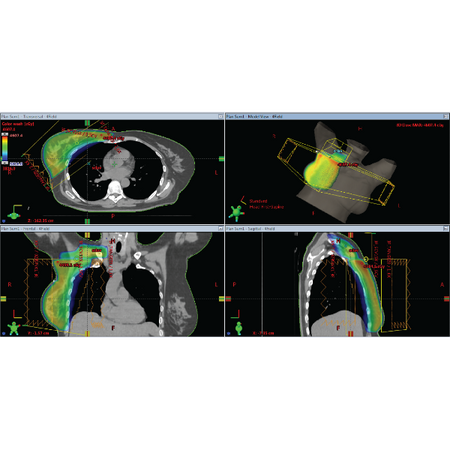 EZFluence follows ASTRO’s guidelines for whole breast treatment. Automate field-in-field and e-comp planning. Optimize coverage while minimizing the maximum dose and V105%.