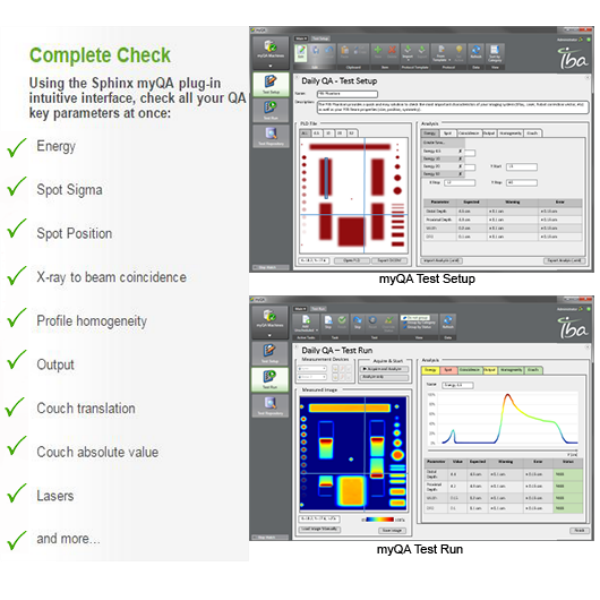 IBA Dosimetry offers the full product range tailored to fit any Pencil Beam Scanning QA needs. Sphinx helps you to save up to 20 minutes and treat one patient more, each day. One single phantom and setup for comprehensive PBS daily machine QA.