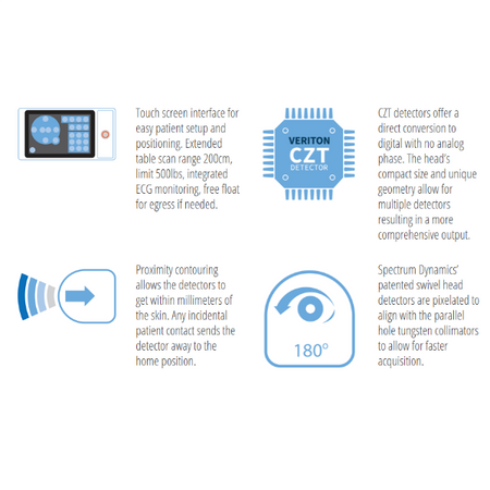 With 360 degree detector coverage, and unique proximity sensors providing 3X volumetric sensitivity vs current technologies, no other nuclear medicine system is able to get as close as VERITON.